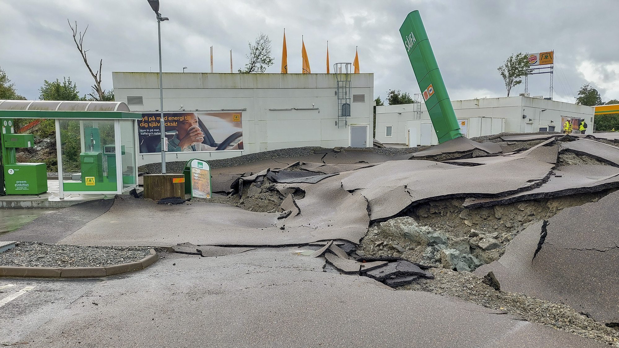 En bensinmack var en av de verksamheter som drabbades av skredet i Stenungsunds kommun i september 2023.