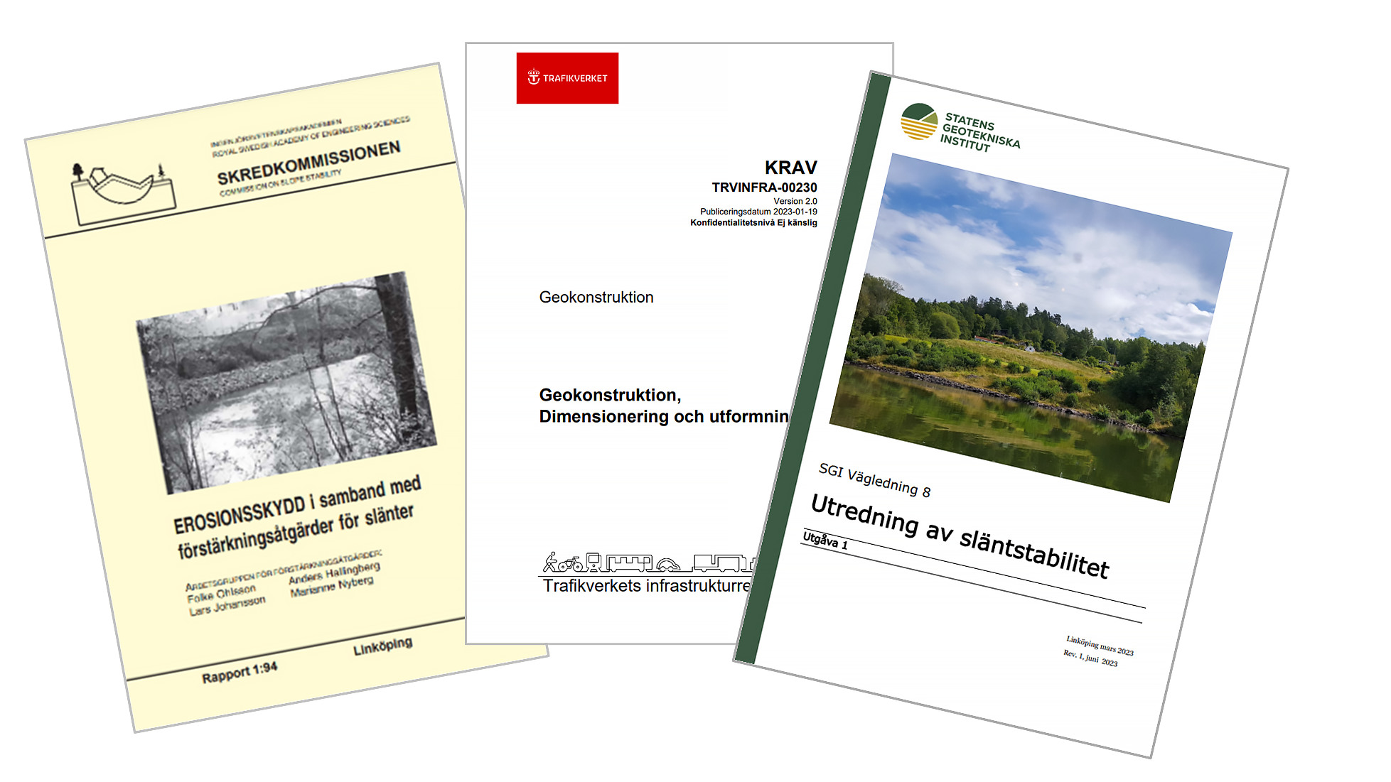 Svenska vägledningar och anvisningar för erosionsskydd och geokonstruktioner.